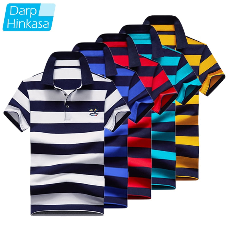 DARPHINKASA Polo Shirt Men Cotton Short-sleeved Men Fashion Stripes Polo Men Embroidery Polo Casual Men Short-sleeved