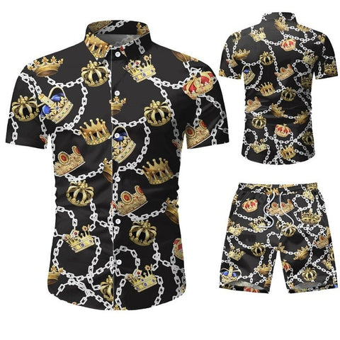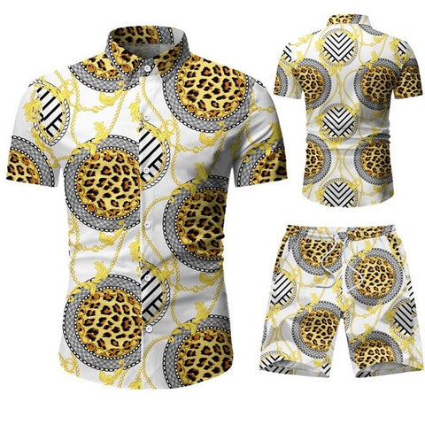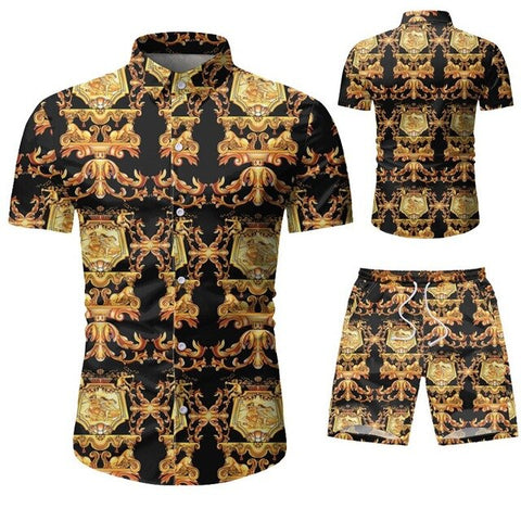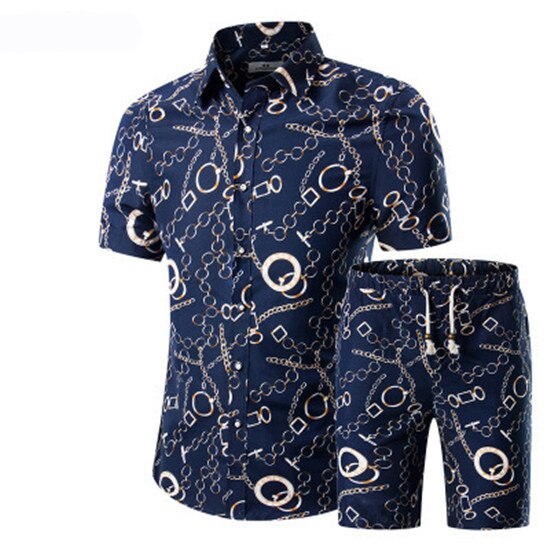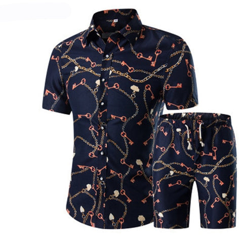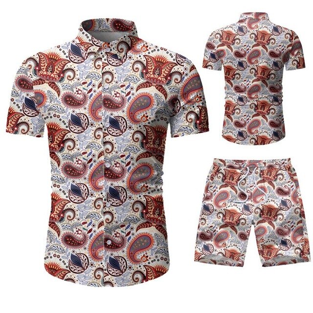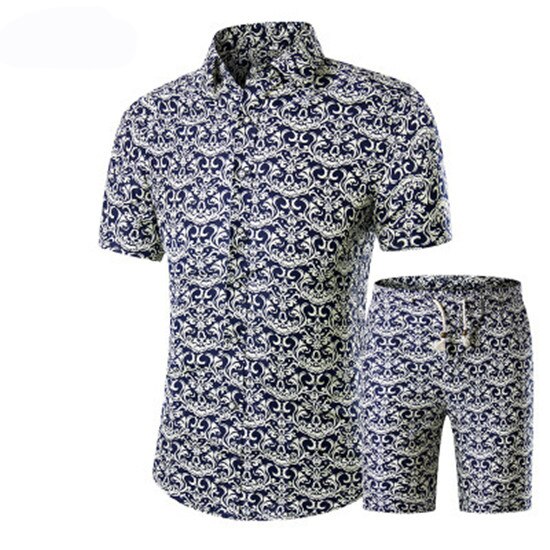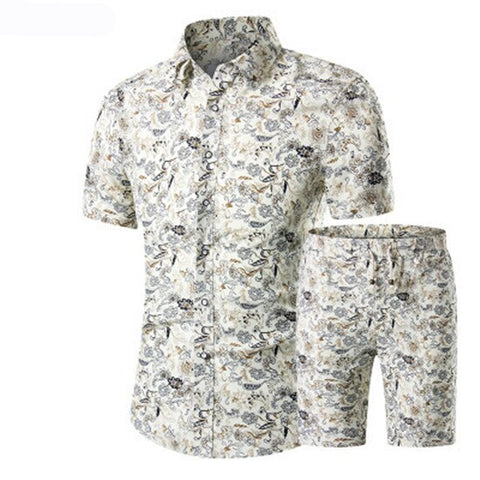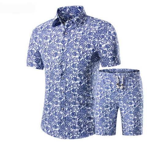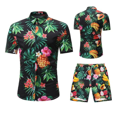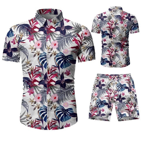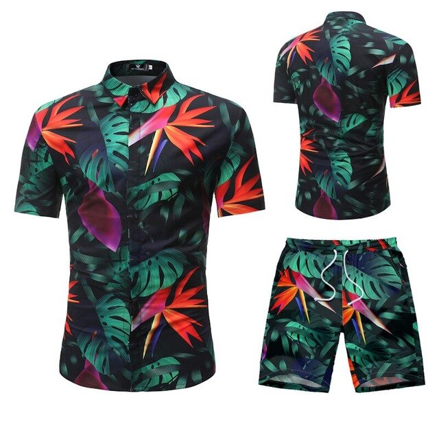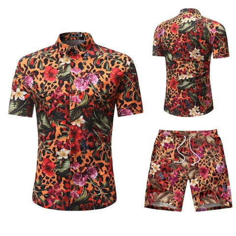 Summer Men 2 Piece Set Hawaiian Shirt Set Casual Male Beach Wear Floral Shirt and Shorts Man Print Shirt Suit Plus Size 4XL 5XL